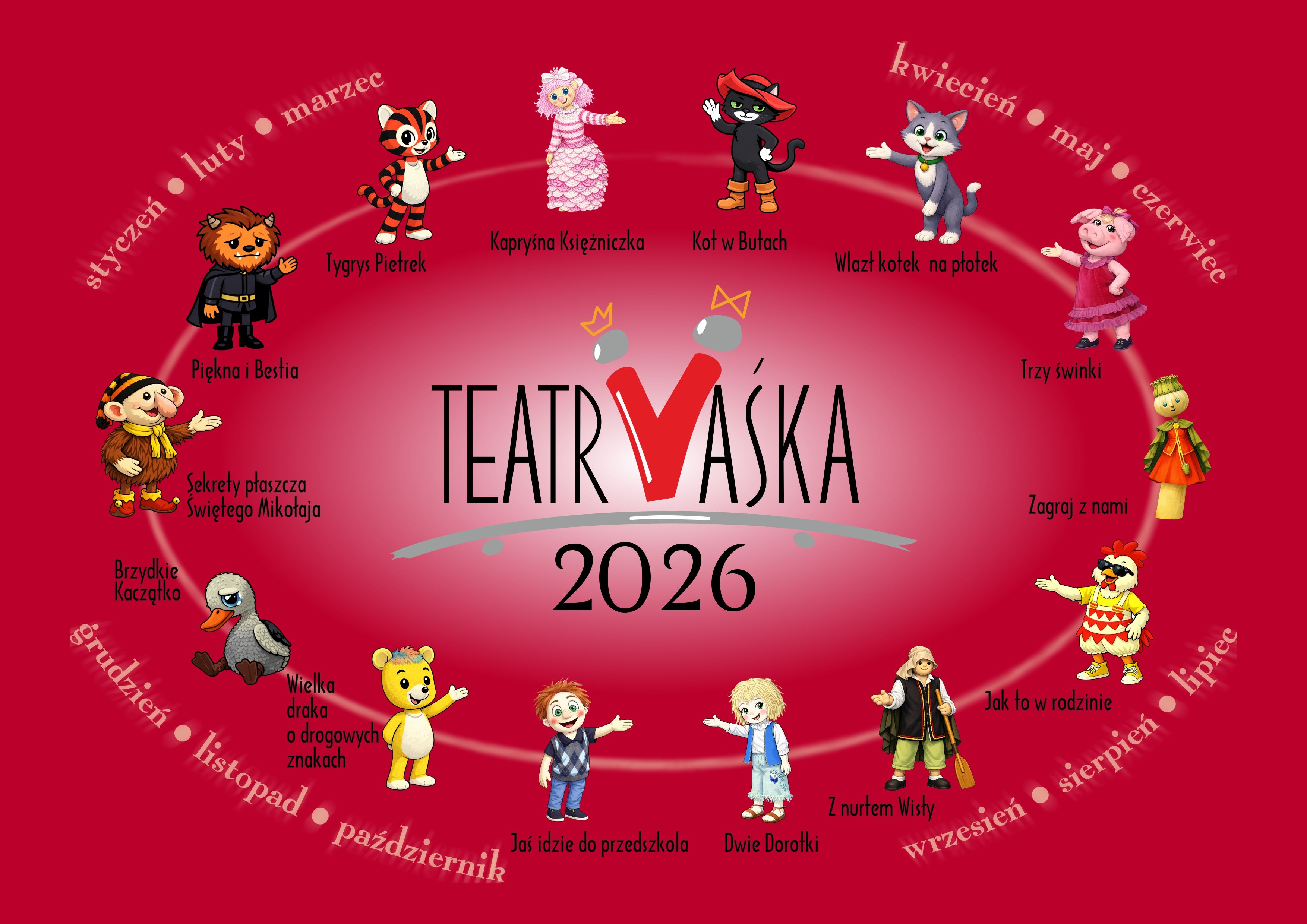 Znajdzie tu propozycje repertuarowe na cały rok 2026. z podziałem na okresy kiedy spektakle wprowadzane będą do repertuaru po premierach i wznowieniach. Ta sama ulotka stała się też naszym przewodnikiem po spektaklach w folderze repertuar, tu wzbogacona o mini animacje, które mamy nadzieje przyciągną naszych małych widzów. Ulotkę można pobrać i wydrukować lub zamówić telefonicznie bezpośrednio u nas. Wyślemy ją tradycyjnie, pocztą natychmiast po zamówieniu.